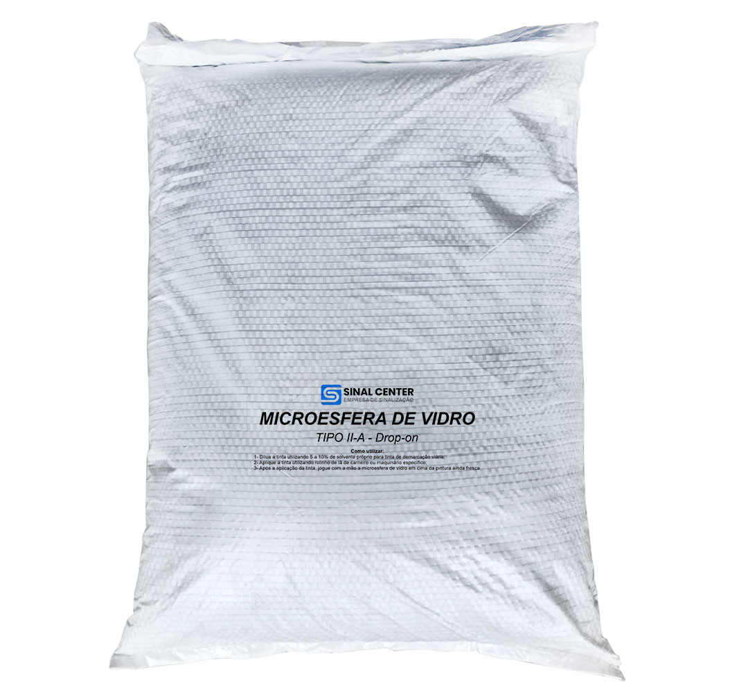 As microesferas de vidro Tipo II-a Drop-on são pequenas esferas de vidro, utilizadas na sinalização viária para refletir a pintura viária e aumentar a visibilidade das marcas no pavimento. Essas microesferas são aplicadas na superfície das tintas de sinalização, refletindo a luz dos faróis dos veículos e melhorando a visibilidade e segurança nas estradas.